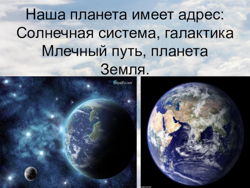 Наша планета имеет адрес: Солнечная система, галактика Млечный путь, планета Земля.