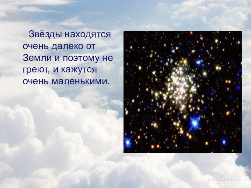 Слайд 11 Звёзды находятся очень далеко от Земли и поэтому не греют,