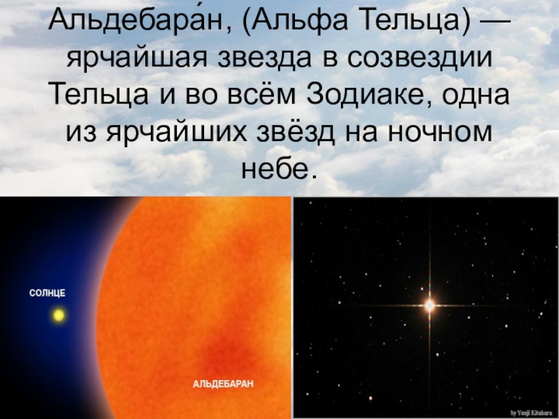 Альдебара́н, (Альфа Тельца) — ярчайшая звезда в созвездии Тельца и во