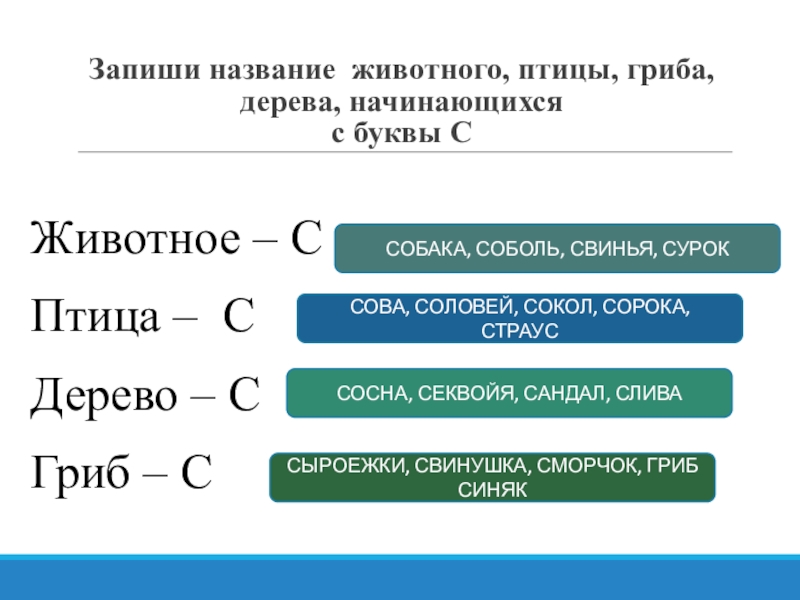 СОВА, СОЛОВЕЙ, СОКОЛ, СОРОКА, СТРАУС
