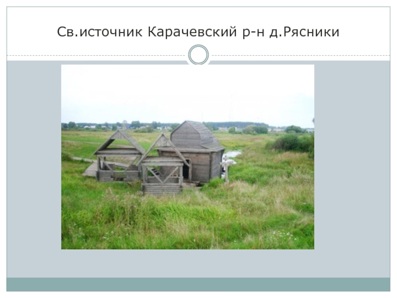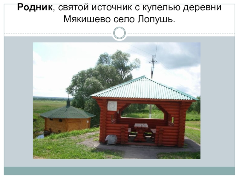 Слайд 4Родник, святой источник с купелью деревни Мякишево село Лопушь.
