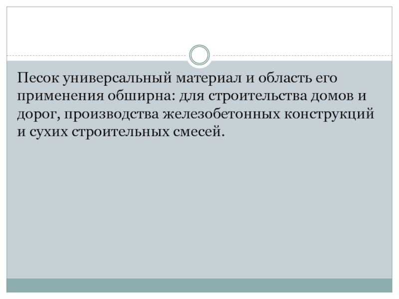 Слайд 24Песок универсальный материал и область его применения обширна: для строительства домов