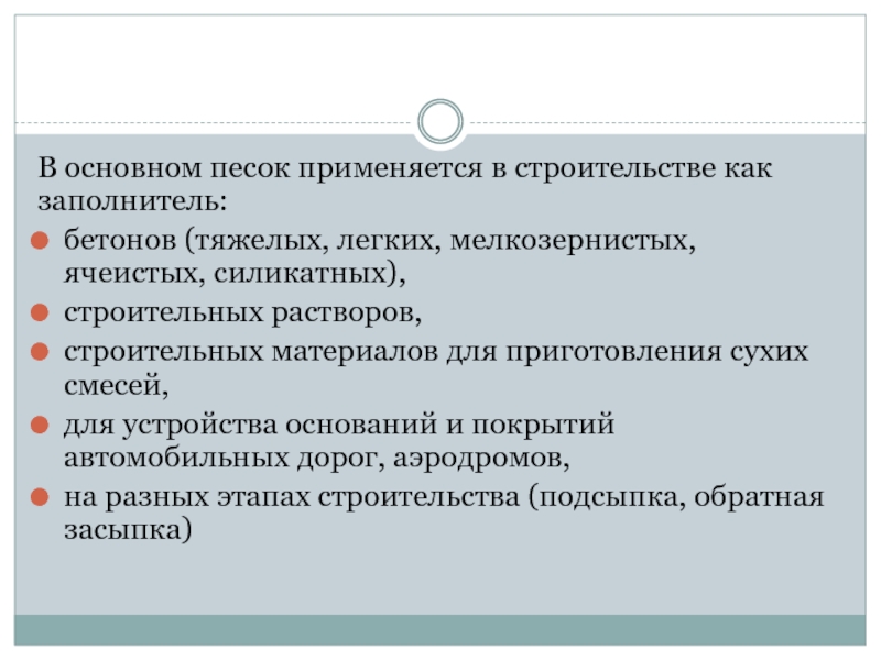 Слайд 25В основном песок применяется в строительстве как заполнитель: