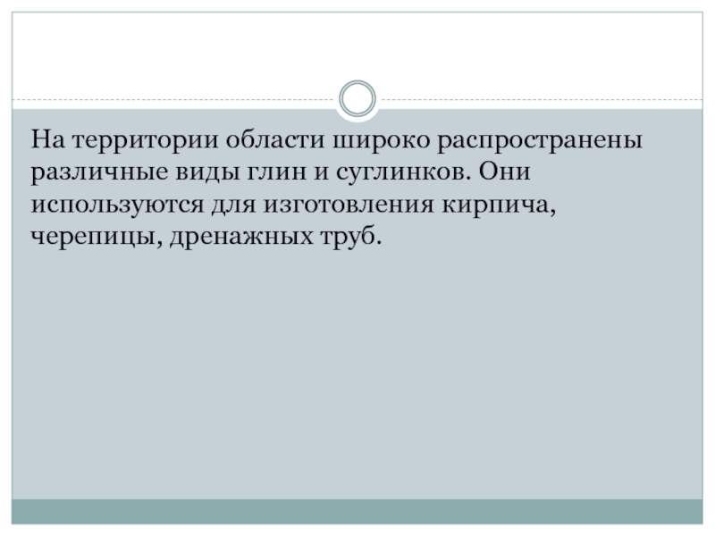 Слайд 15На территории области широко распространены различные виды глин и суглинков. Они