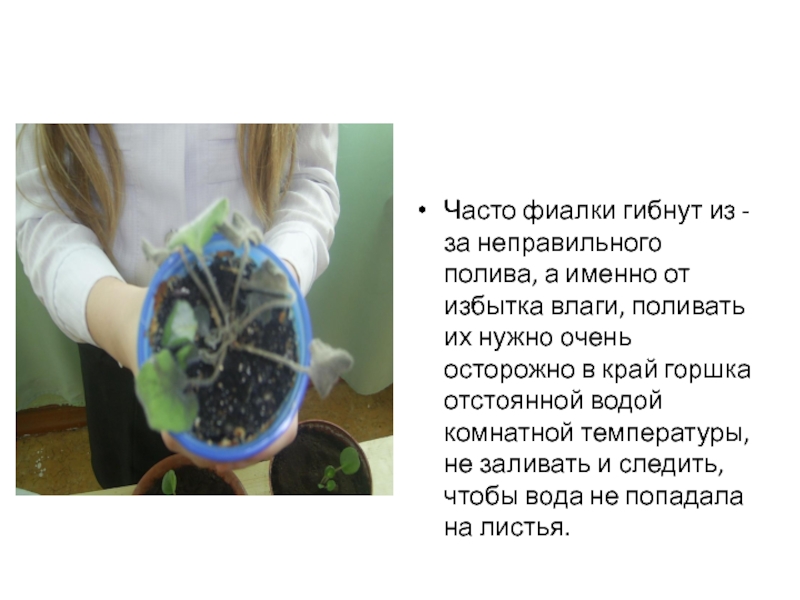 Если вода попадает на листья цветка, растение покрывается белым налётом, а потом листья вянут.