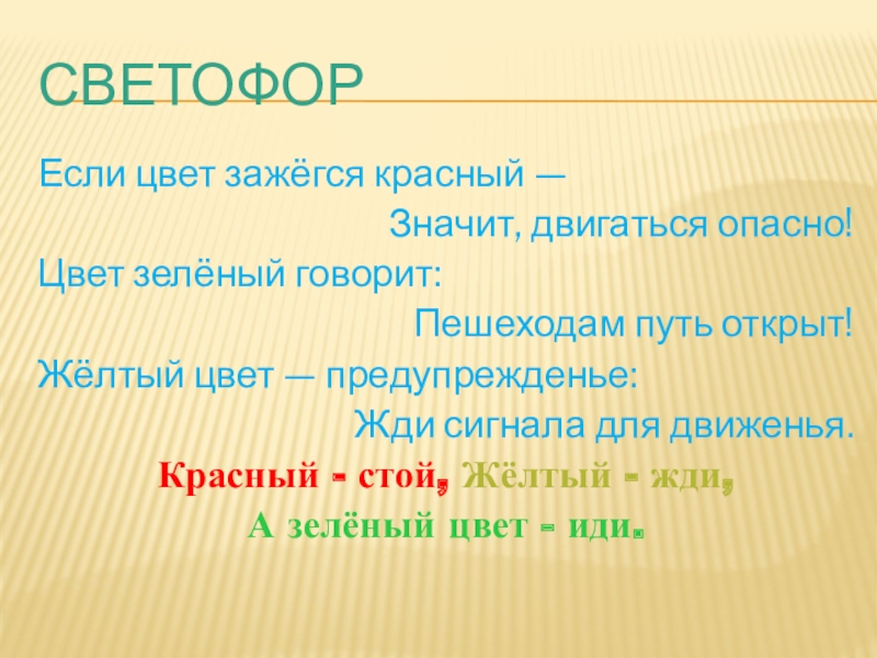 На какой цвет светофора идти , на какой ждать и на какой стоять?