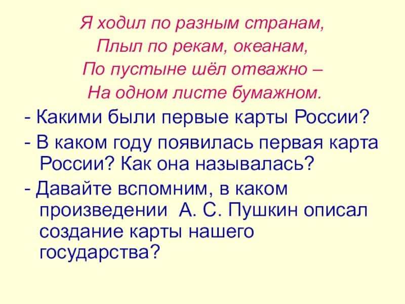 - Давайте вспомним, в каком произведении А. С. Пушкин описал создание карты нашего государства?