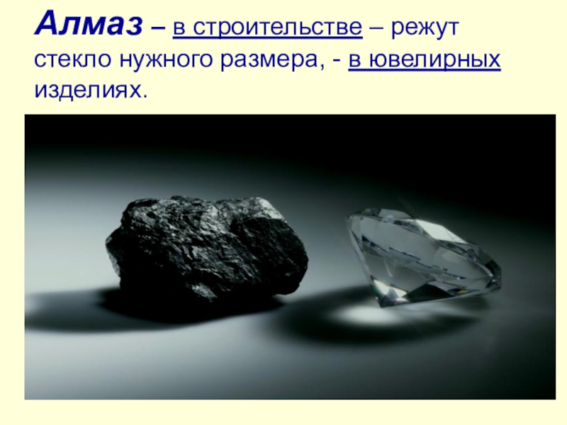 Слайд 22Алмаз – в строительстве – режут стекло нужного размера, - в