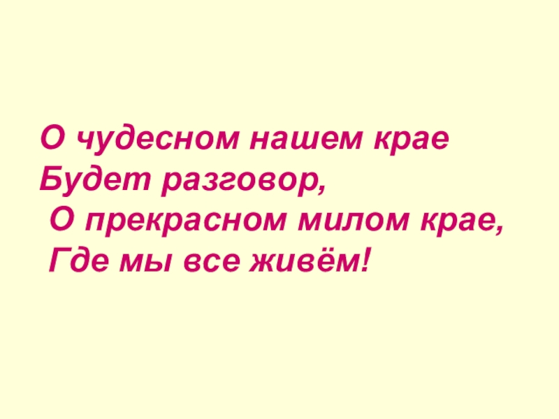 Слайд 3О чудесном нашем крае Будет разговор, О прекрасном милом крае, Где мы