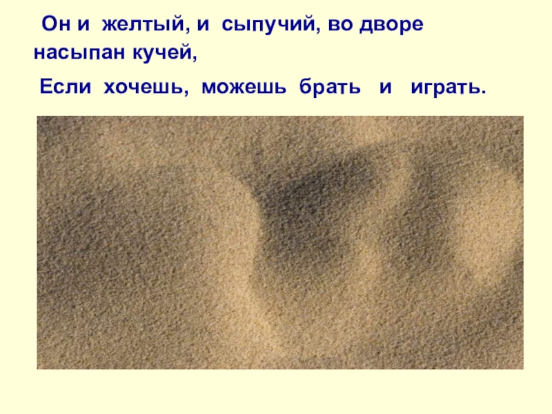 Слайд 12 Он и желтый, и сыпучий, во дворе насыпан кучей,