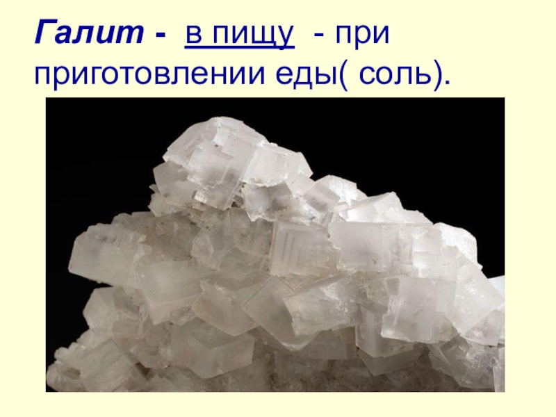 Слайд 20Галит - в пищу - при приготовлении еды( соль).