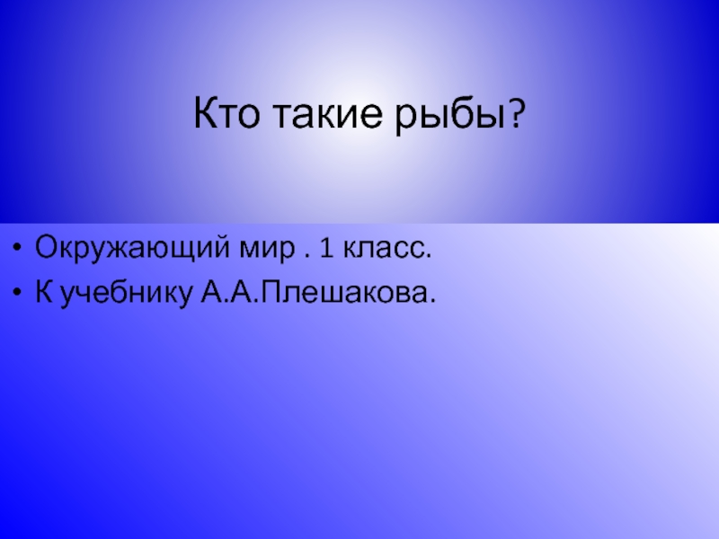 Кто такие рыбы?Окружающий мир . 1 класс.К учебнику А.А.Плешакова.