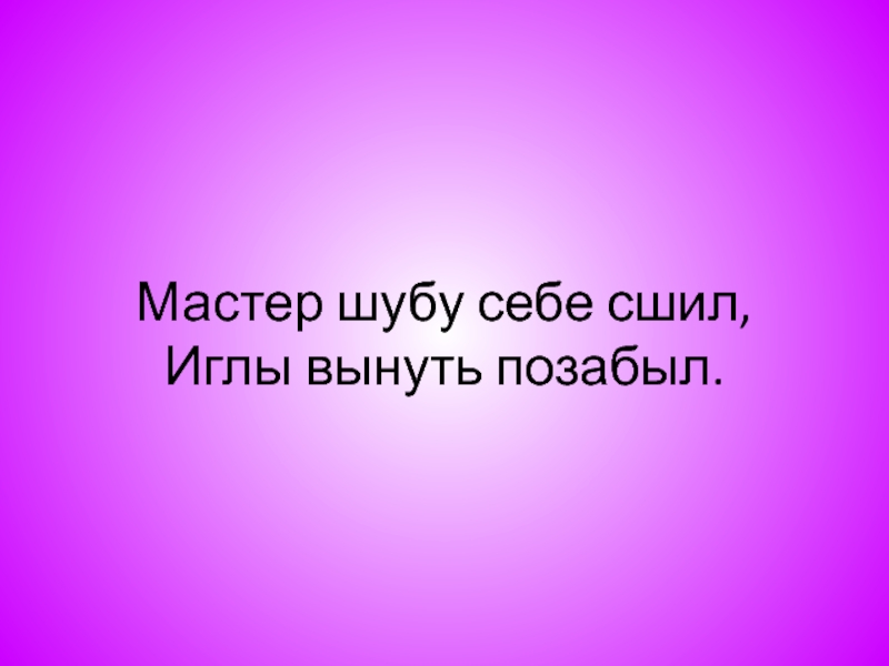 Слайд 12Мастер шубу себе сшил, Иглы вынуть позабыл.