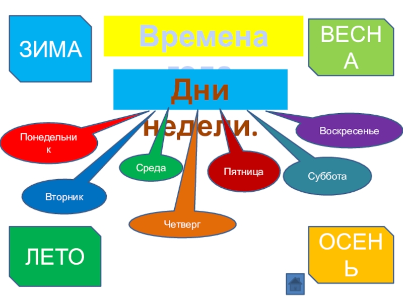 Времена года.ЗИМАЛЕТОВЕСНАОСЕНЬДни недели.ЧетвергПятницаСубботаВоскресеньеСредаВторникПонедельник