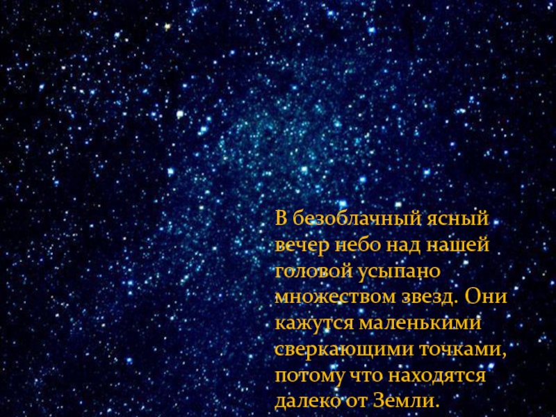 Слайд 2В безоблачный ясный вечер небо над нашей головой усыпано множеством звезд.