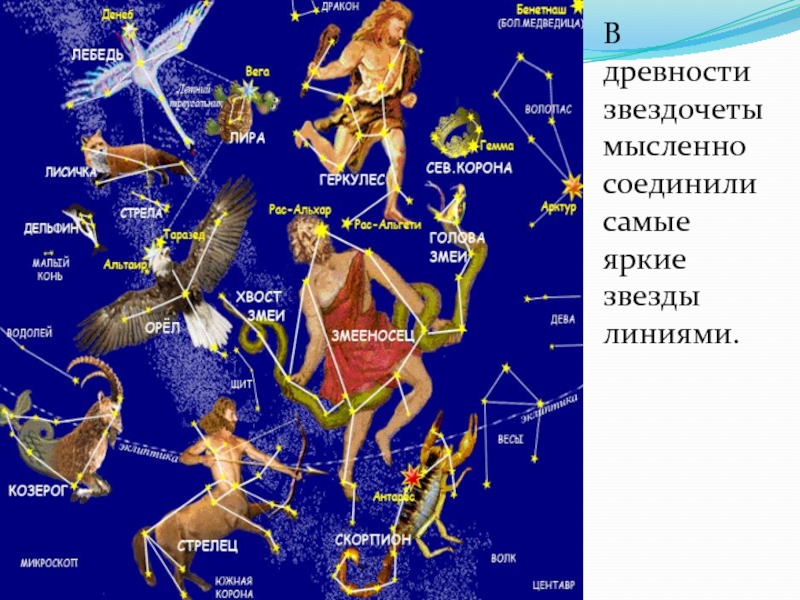 Слайд 7В древности звездочеты мысленно соединили самые яркие звезды линиями.