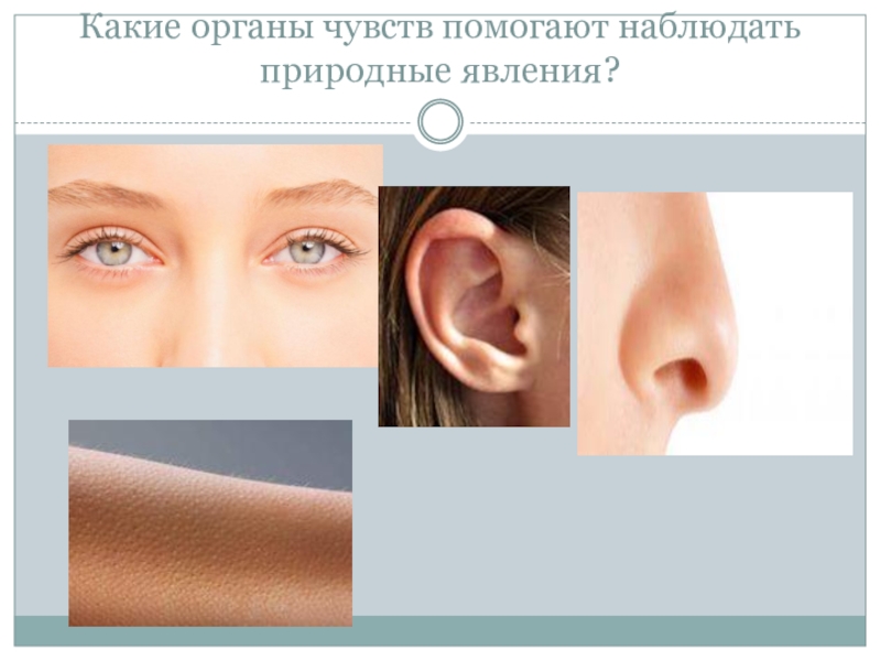 Слайд 13Какие органы чувств помогают наблюдать природные явления?