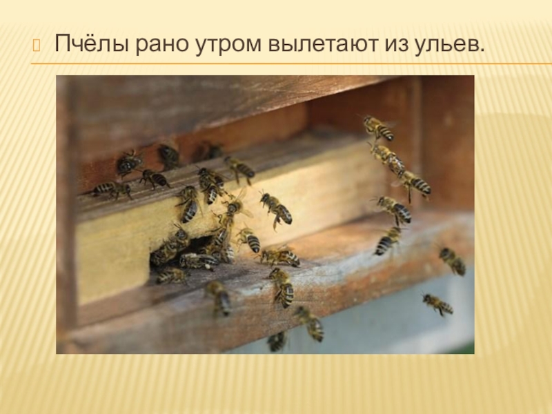 Слайд 7Пчёлы рано утром вылетают из ульев.