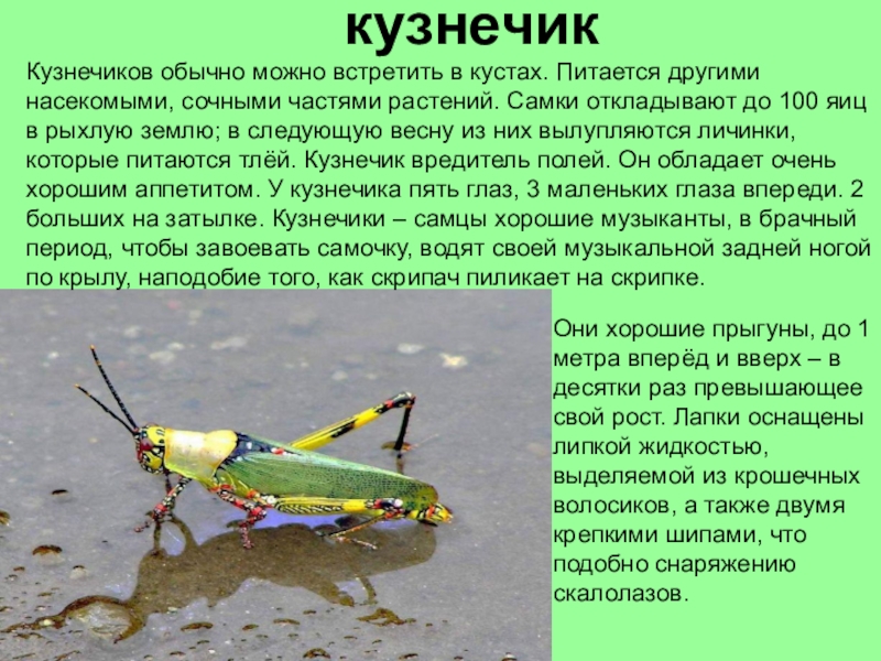Они хорошие прыгуны, до 1 метра вперёд и вверх – в десятки раз превышающее свой рост. Лапки оснащены липкой жидкостью, выделяемой из крошечных волосиков, а также двумя крепкими шипами, что подобно снаряжению скалолазов.