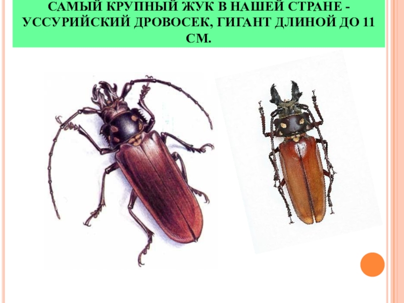 Слайд 13САМЫЙ КРУПНЫЙ ЖУК В НАШЕЙ СТРАНЕ -УССУРИЙСКИЙ ДРОВОСЕК, ГИГАНТ ДЛИНОЙ ДО