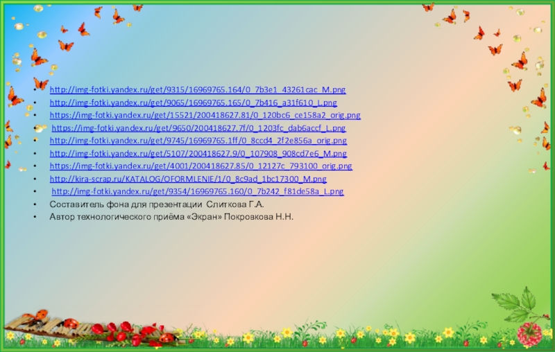 http://img-fotki.yandex.ru/get/9315/16969765.164/0_7b3e1_43261cac_M.png http://img-fotki.yandex.ru/get/9065/16969765.165/0_7b416_a31f610_L.pnghttps://img-fotki.yandex.ru/get/15521/200418627.81/0_120bc6_ce158a2_orig.png https://img-fotki.yandex.ru/get/9650/200418627.7f/0_1203fc_dab6accf_L.pnghttp://img-fotki.yandex.ru/get/9745/16969765.1ff/0_8ccd4_2f2e856a_orig.pnghttp://img-fotki.yandex.ru/get/5107/200418627.9/0_107908_908cd7e6_M.png https://img-fotki.yandex.ru/get/4001/200418627.85/0_12127c_793100_orig.pnghttp://kira-scrap.ru/KATALOG/OFORMLENIE/1/0_8c9ad_1bc17300_M.png http://img-fotki.yandex.ru/get/9354/16969765.160/0_7b242_f81de58a_L.pngСоставитель фона для презентации Слиткова Г.А.Автор технологического приёма «Экран» Покровкова Н.Н.