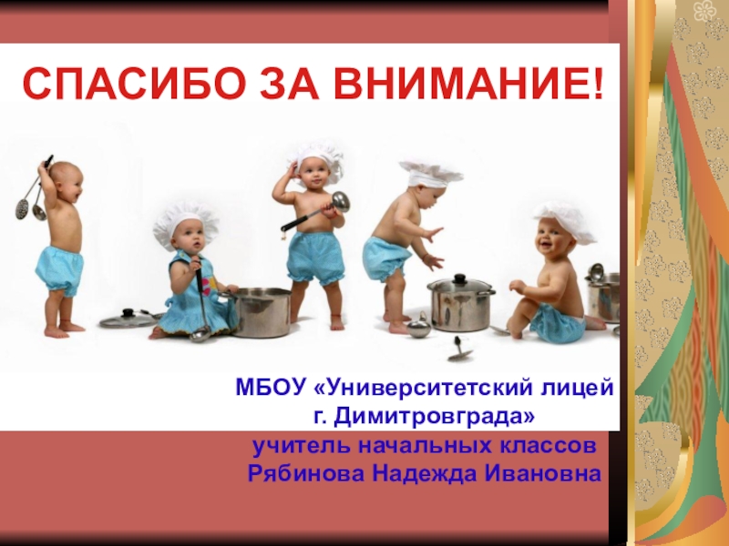 СПАСИБО ЗА ВНИМАНИЕ!МБОУ «Университетский лицейг. Димитровграда»учитель начальных классовРябинова Надежда Ивановна