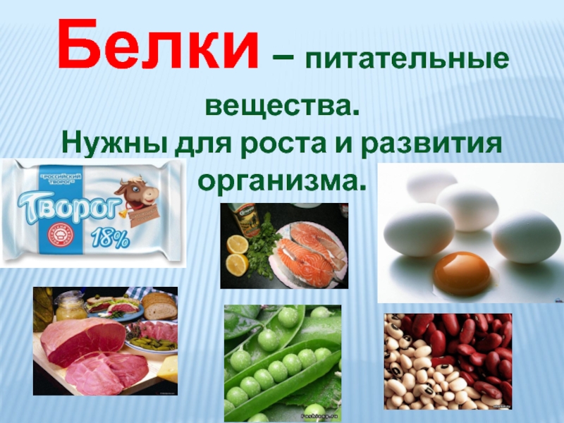 Белки – питательные вещества.Нужны для роста и развития организма.