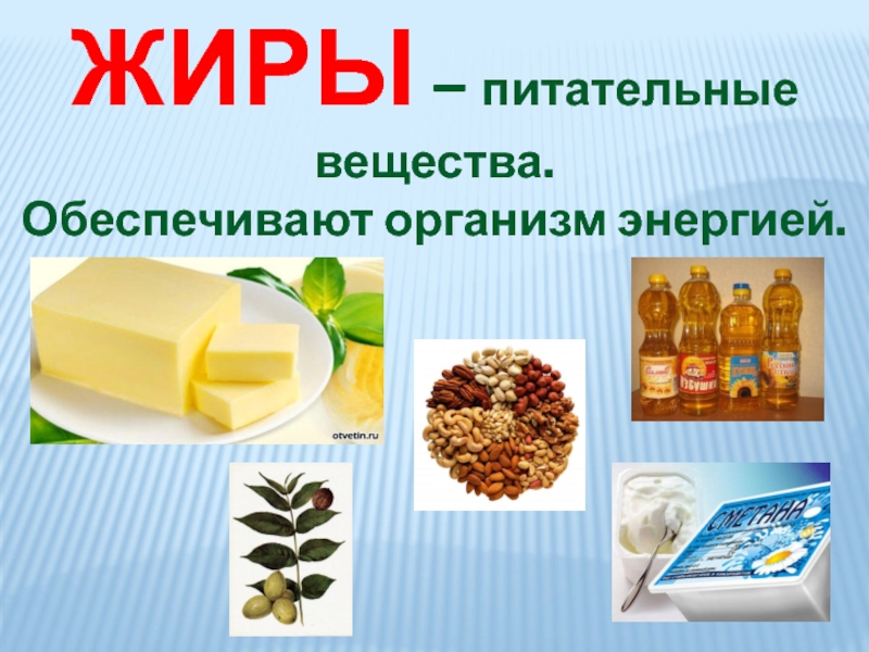 ЖИРЫ – питательные вещества.Обеспечивают организм энергией.