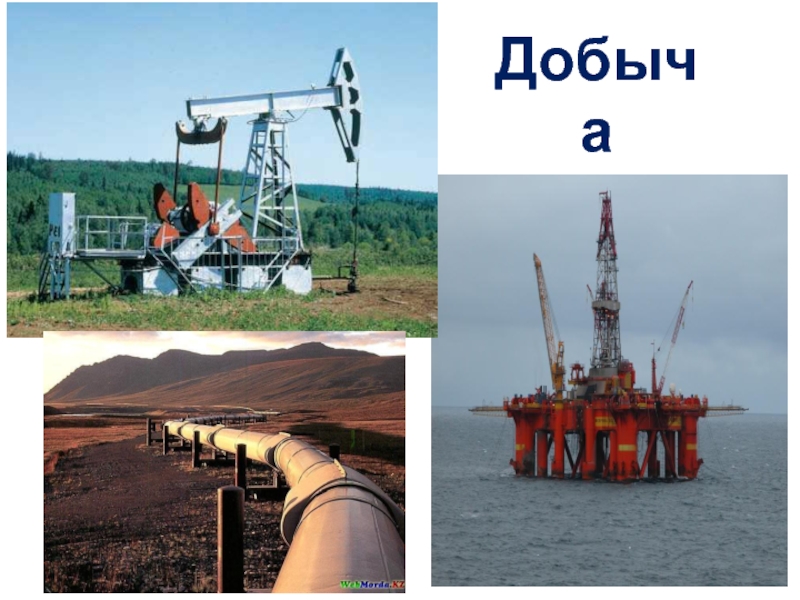 Для добычи нефти строят буровые вышки , бурят глубокие скважины, выкачивают её мощными насосами.