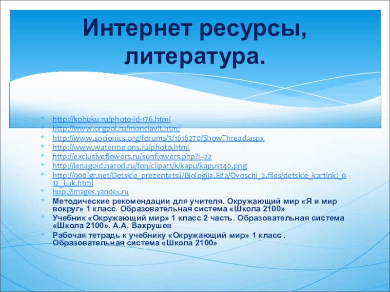 Интернет ресурсы, литература.