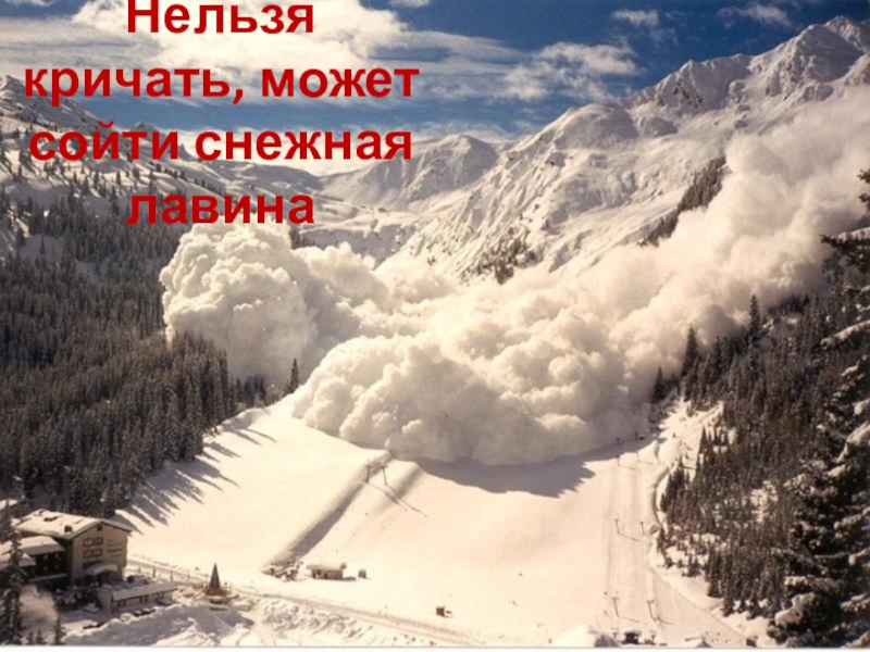 Слайд 5Нельзя кричать, может сойти снежная лавина