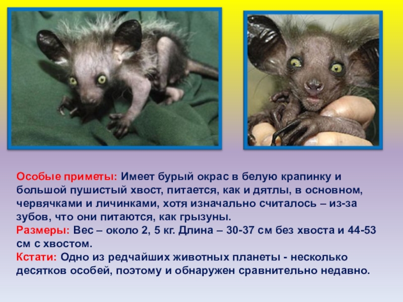 Слайд 43Что за зверь: Самый большое животное их ночных приматов.