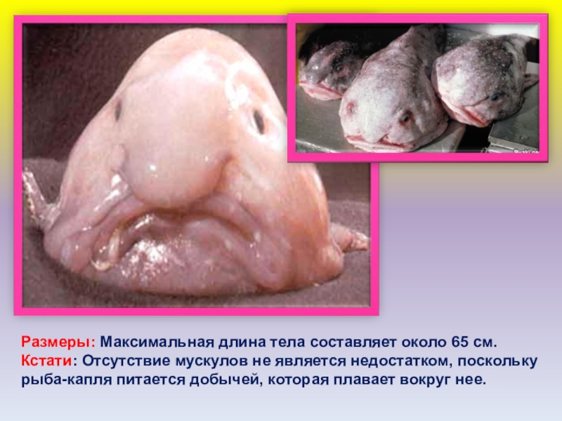 не является недостатком, поскольку рыба-капля питается добычей, которая плавает вокруг нее.
