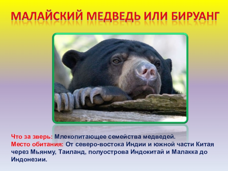Слайд 6Что за зверь: Млекопитающее семейства медведей.