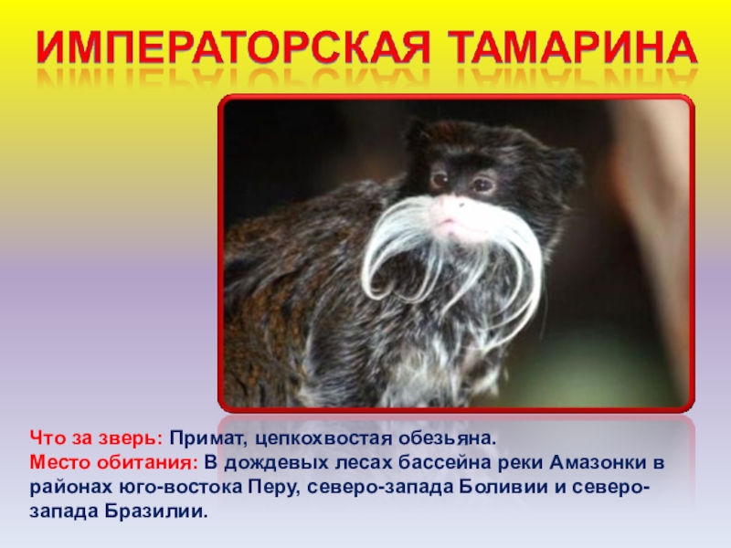 Слайд 61Что за зверь: Один из самых маленьких приматов, относится к широконосым