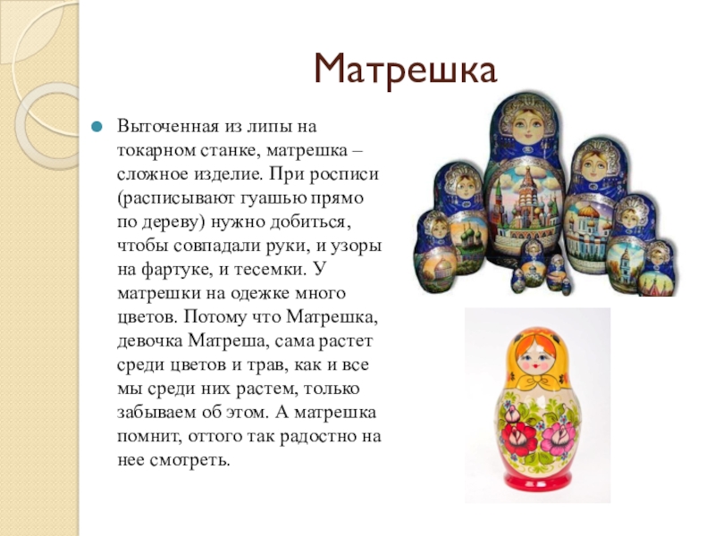 Выточенная из липы на токарном станке, матрешка – сложное изделие. При