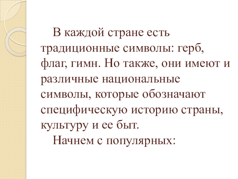 Слайд 2 В каждой стране есть традиционные символы: герб, флаг, гимн. Но также,