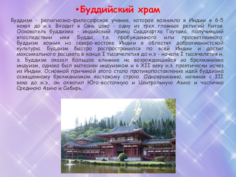 Буддизм - религиозно-философское учение, которое возникло в Индии в 6-5