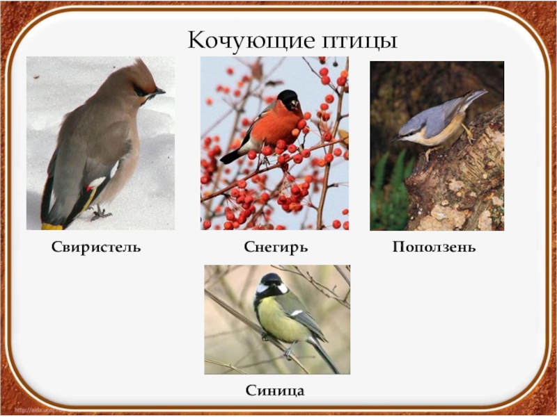 Кочующие птицы   Свиристель СнегирьПоползень