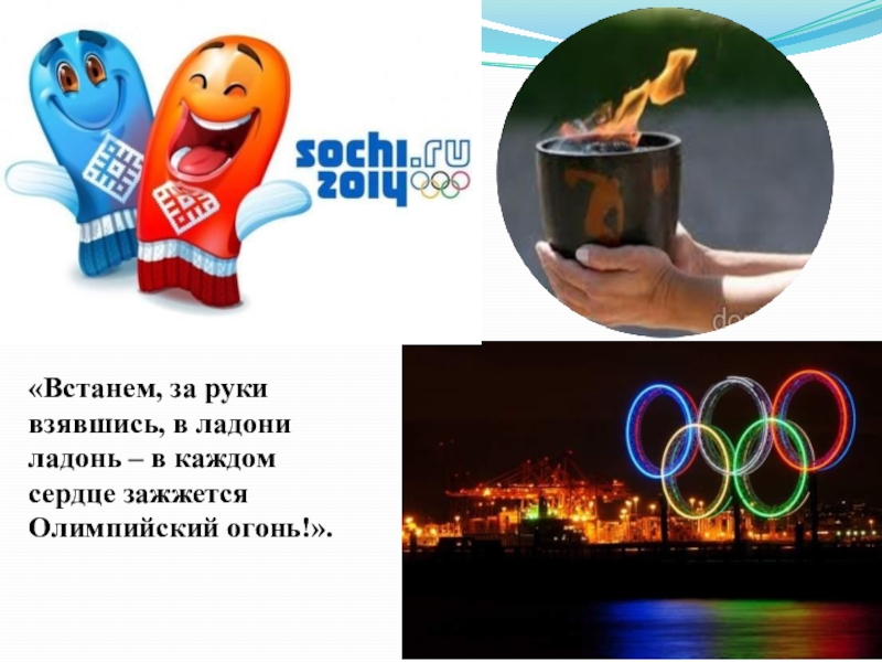 «Встанем, за руки взявшись, в ладони ладонь – в каждом сердце зажжется Олимпийский огонь!».