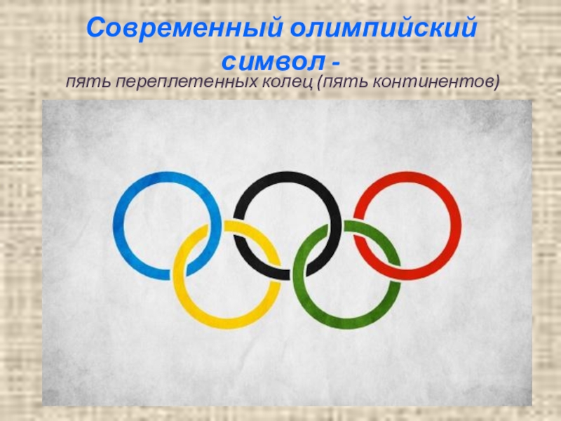 Современный олимпийский символ -пять переплетенных колец (пять континентов)