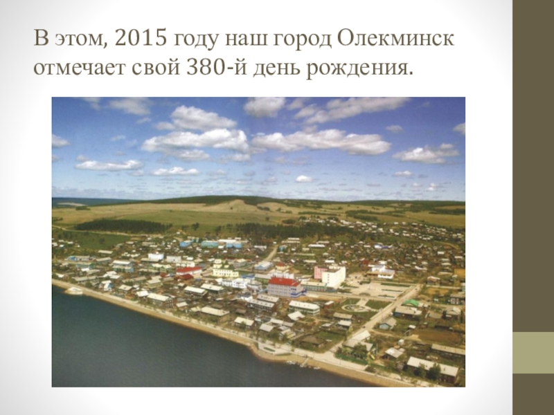 Слайд 2В этом, 2015 году наш город Олекминск отмечает свой 380-й день
