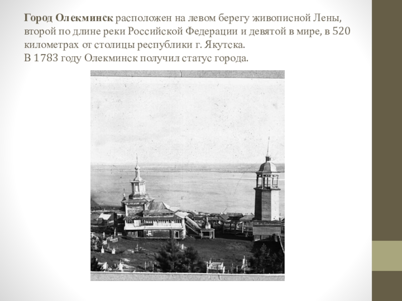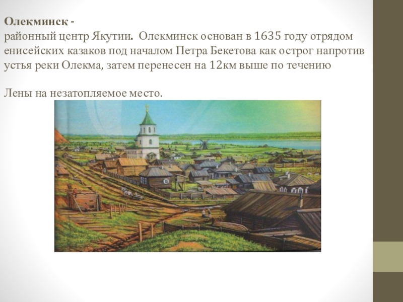 Слайд 3Олекминск - районный центр Якутии. Олекминск основан в 1635 году отрядом