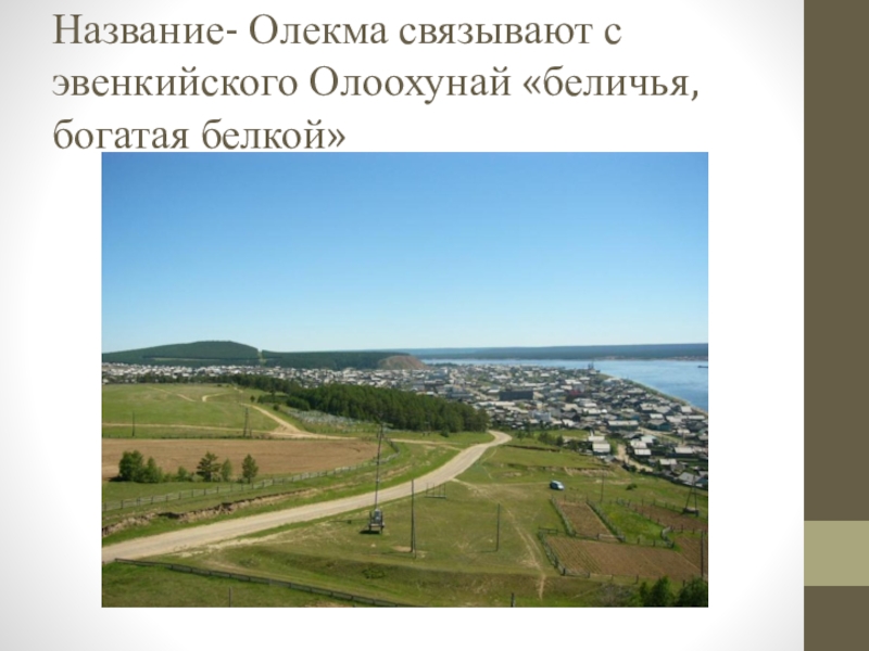 Слайд 4Название- Олекма связывают с эвенкийского Олоохунай «беличья, богатая белкой»