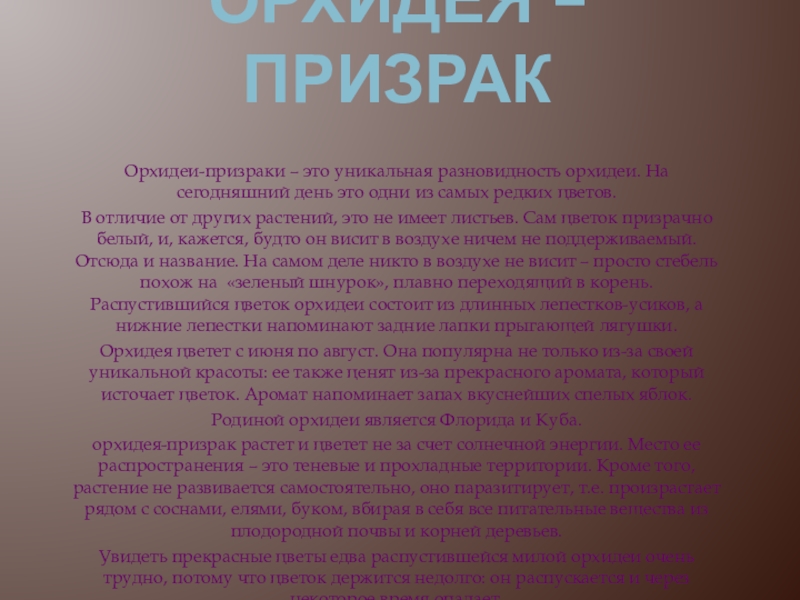 Увидеть прекрасные цветы едва распустившейся милой орхидеи очень трудно, потому что цветок держится недолго: он распускается и через некоторое время опадает.