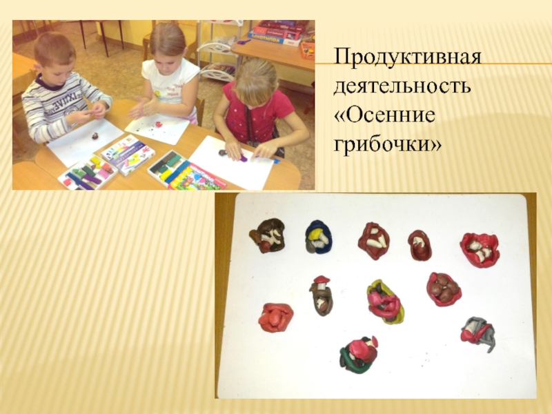 Слайд 13Продуктивная деятельность «Осенние грибочки»