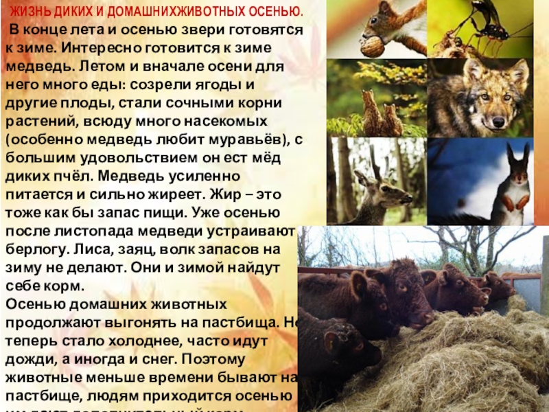 ЖИЗНЬ ДИКИХ И ДОМАШНИХЖИВОТНЫХ ОСЕНЬЮ. В конце лета и осенью звери готовятся к зиме. Интересно готовится к