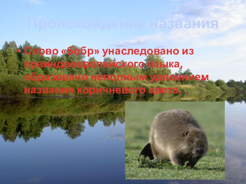 Слово «бобр» унаследовано из праиндоевропейского языка, образовано неполным удвоением