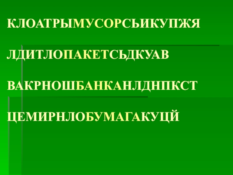 Слайд 17КЛОАТРЫМУСОРСЬИКУПЖЯ ЛДИТЛОПАКЕТСЬДКУАВ ВАКРНОШБАНКАНЛДНПКСТ ЦЕМИРНЛОБУМАГАКУЦЙ