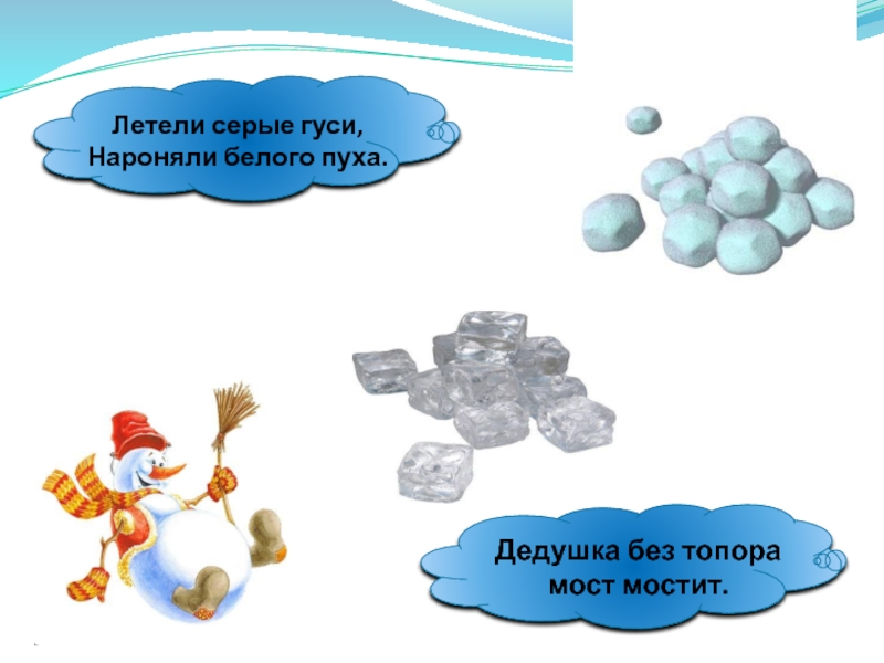 Летели серые гуси, Нароняли белого пуха.Дедушка без топора мост мостит.